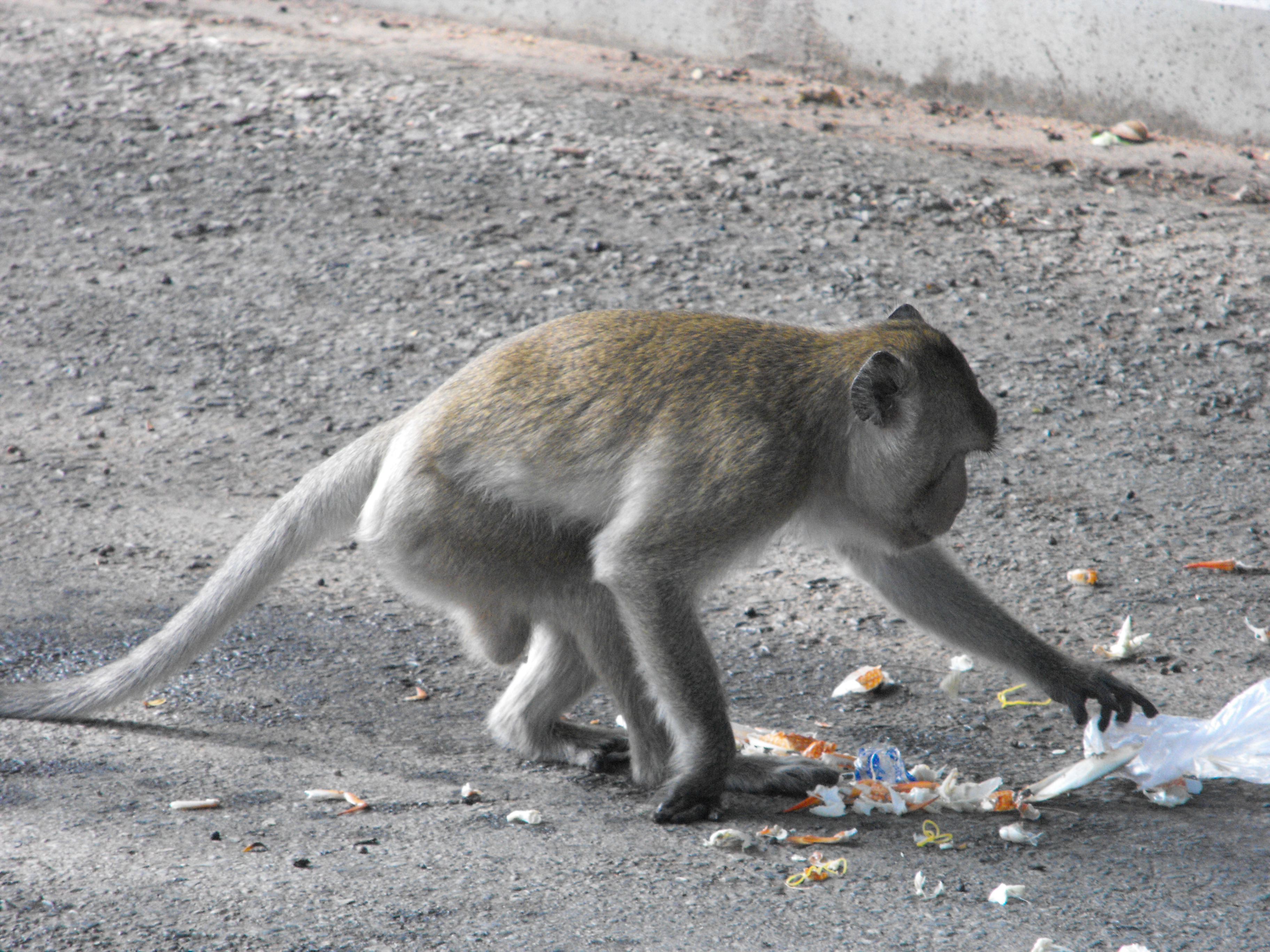 On the weekend I went to a seaside town called Kep. There are lots of monkeys there. they have yellowy-brown fur with white chests and stomachs, and they follow tourists around wanting food and trying to snatch bags. One of them, about two foot tall, went straight in front of me opened its mouth and bared its teeth. Fortunately, if you splash some water at them they run away. I was a bit concerned ‘cos I don’t know if they have diseases that can be transmitted to humans, but