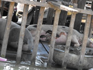 Some new photos: In Cambodia there is a whole community that lives in boats, flaoting houses built of floors of thick bamboo, and deconstructable houses on stilts in the middle of the Tonle Sap lake. These people fish, and also keep live stock (in cages, on floors of floating bamboo) on the lake. Here are some photos. At the height of the rany season, some of them dismantle their houses and move them to land.